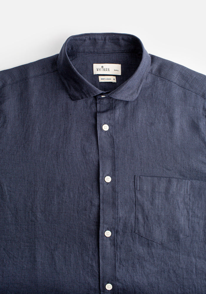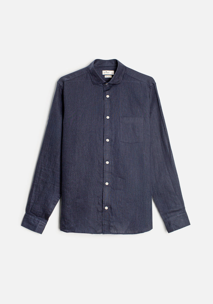 Dark Blue Solid Color Linen Shirt