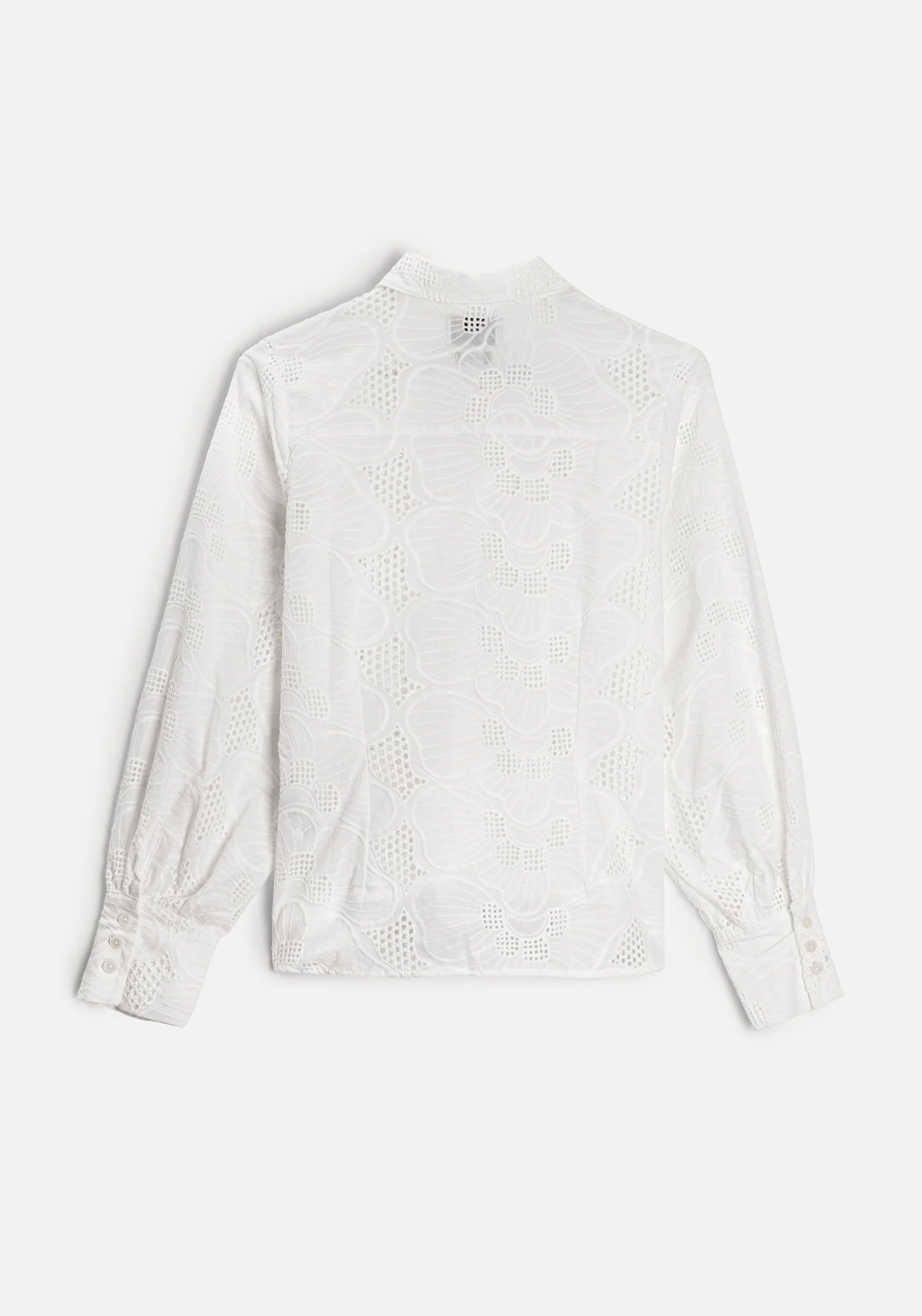 Made of 100% eyelet cotton, this blouse stands out for its fresh and sophisticated design. The fabric in the form of small eyelets not only provides a unique decorative touch, but also excellent breathability.