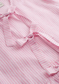 Linen Blouse Gia Medium Pink Stripes - White