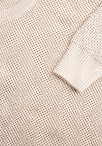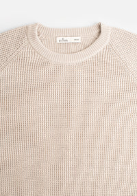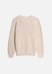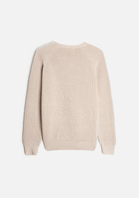 This round-neck knit sweater, made from 100% cotton, is the perfect combination of comfort and timeless style. Its raglan sleeve design provides a relaxed and versatile fit, while the ribbed details on the collar, cuffs, and waistband add structure and a refined finish. Ideal for those looking for a lightweight, breathable garment that is soft to the touch, perfect for any occasion.