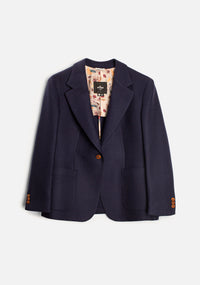 The Agatha Blazer is made from 100% wool and has a relaxed silhouette that offers elegance and comfort. Its classic design, with a single front button, patch pockets, and tailored sleeves with three buttons, balances elegance with comfort. The central cut at the back adds a refined detail to accompany you in style on any occasion.