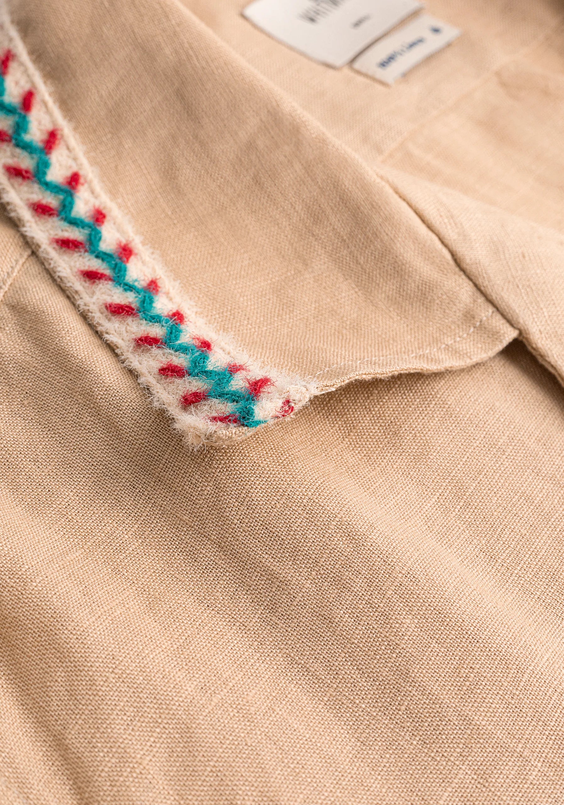 Our Cuban shirt is made of 100% lightweight linen and features a boxy silhouette, straight collar and lapel, pointed pockets, short sleeves and side slits. It is ideal for warm weather wear because its main material becomes an inflatable in any closet.