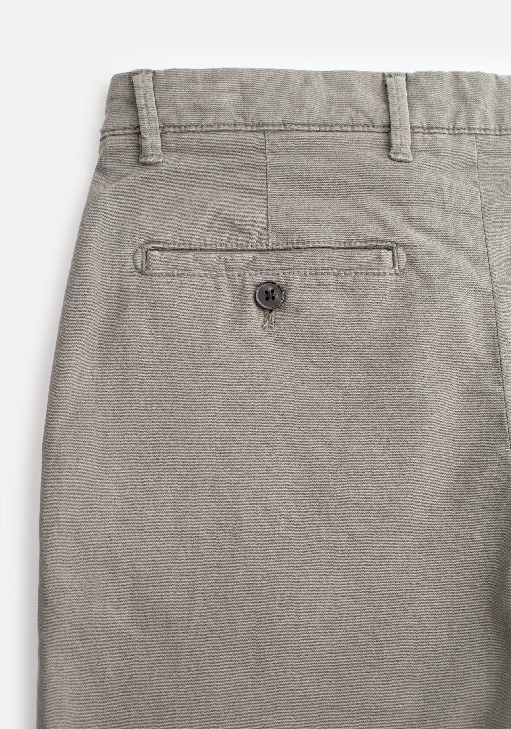 A classic chino pant reinvented in garment dyed denim with a unique garment dyed technique that adds depth and character to the color. The timeless straight-boot silhouette is complemented by functional diagonal pockets, non-crossover waistband for a clean fit and tagua buttons for a natural touch.