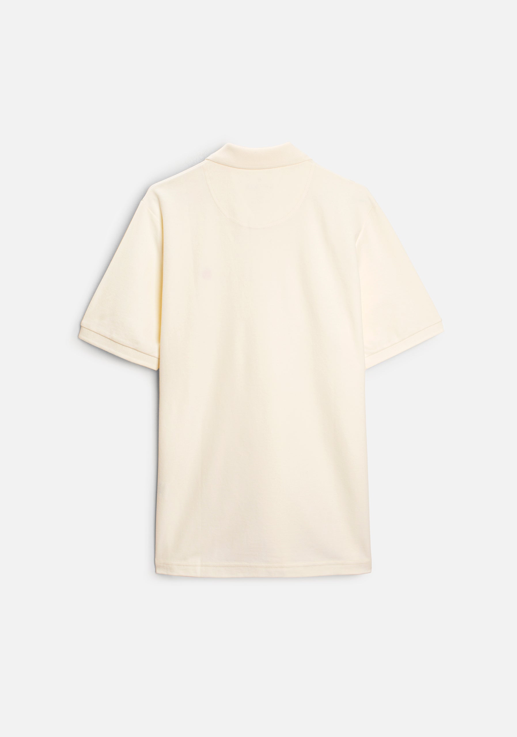 Its classic design with a straight fit includes a woven shirt collar, a three-button placket, and short sleeves with ribbed cuffs that hold their shape. It is the perfect garment for those seeking effortless elegance.